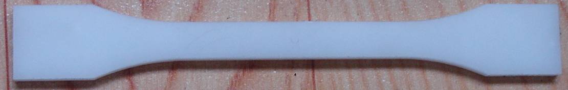 用R3212制备170*170*4 mm 的PP板后, 经制样机裁样的哑铃条 (150*10 mm, GBT 1040.2-2006-1B 型)